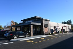 OPENED: ???, PHOTO: 4/29/2005 This is another one of those stores with a "hallway of despair". Imagine yourself craving Starbucks more than anything in the world, screeching to a stop in a parking space, and rushing up to the door only to discover... a long, long hallway leading up to the register. Do you have the energy to traverse the distance? Do you??? | |
