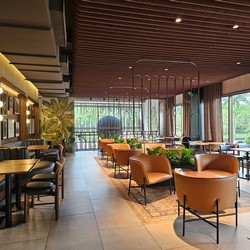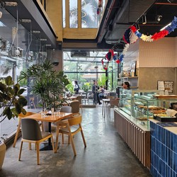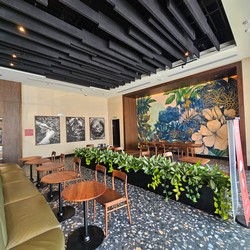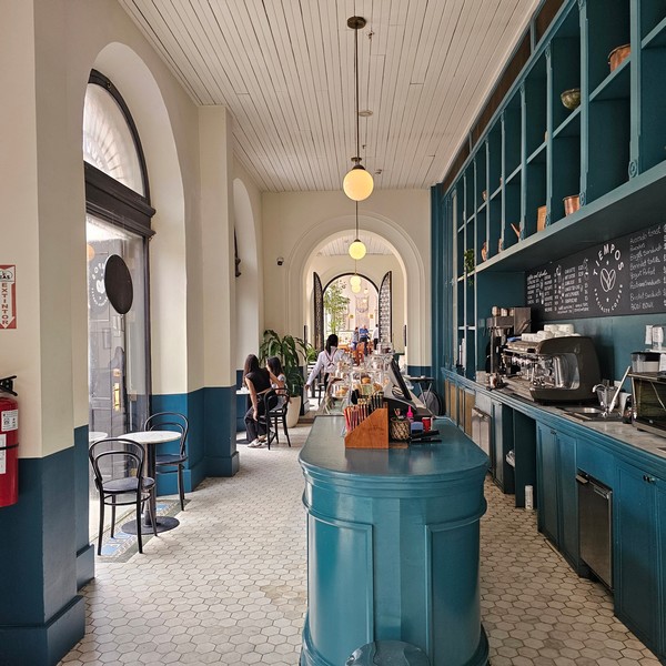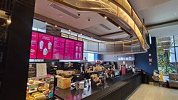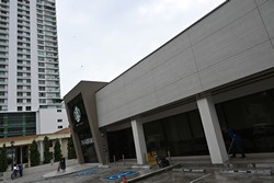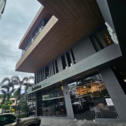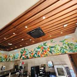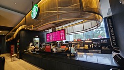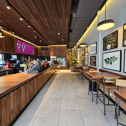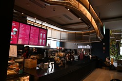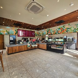 This is the first relocation in Panama, replacing the Atrio Mall store. Besides including a drive-thru, this cafe is much larger with two stories, more natural lighting, and even a mural along the drive-thru lane wall.