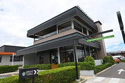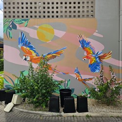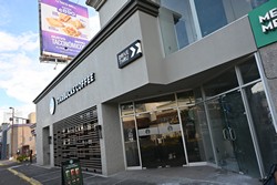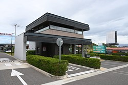 This store is fairly simple but does have a small mural that wraps around the drive-thru lane.