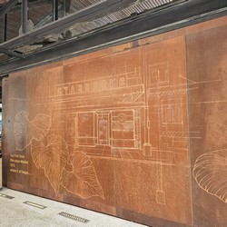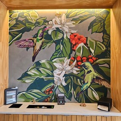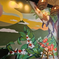 This store features a gorgeous wall-length mural by @majorodriguez.cr who has created art for many of the local Starbucks.