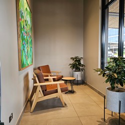 As if a stunning mural featuring a SLOTH were not enough, this store boasts a unique feature, a room where half the seats are swing-style!