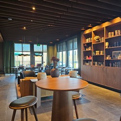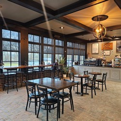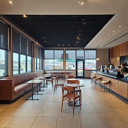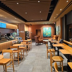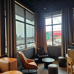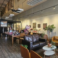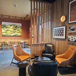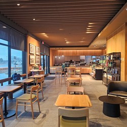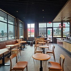 This store was initially supposed to be drive-thru/pickup only, but they decided to add a large tall table and two comfy chairs.