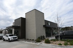 OPENED: 10/1/2018, PHOTO: 5/24/2019 One of the newest stores in Austin features a custom coffee bean mural along the drive-thru lane, as well as an unusual tile pattern along the main bar. | |