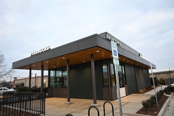 This is an unusual relocation because the original was a cafe store, in the same parking lot, and it moved into a DRIVE-THRU/WALK-UP ONLY space which goes against the current Starbucks philosophy of returning to more seating.