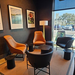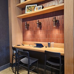 This store features a variant of the new design that includes a small counter-style seating area tucked in between a partition.