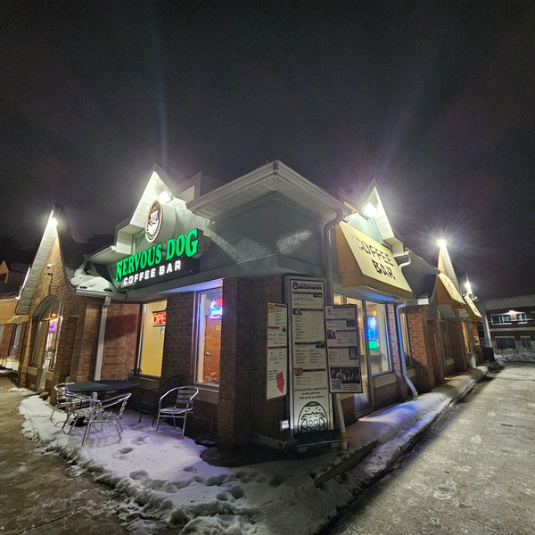 Tree Town Cafe has been on Penfield Road since 2019, and like Eden I pass it regularly (while on my way to the gym), but the cafe is tucked into a parking lot behind some trees, so I can be forgiven for not having noticed. The cafe was quite busy on a Saturday afternoon, with keen interest from customers in the food menu and the merchandise arrayed on the middle tables, but in terms of coffee, the place is not for me. They have multiple drip options, but two are flavoured, one is dark, and the light is a mediocre blend from Evening Star.