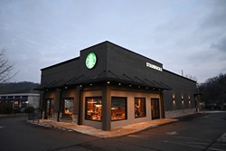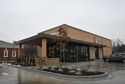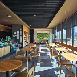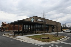 This is an unusual relocation because the original was a cafe store, in the same parking lot, and it moved into a DRIVE-THRU/WALK-UP ONLY space which goes against the current Starbucks philosophy of returning to more seating.