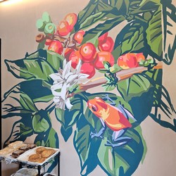 This store features a gorgeous wall-length mural by @majorodriguez.cr who has created art for many of the local Starbucks.