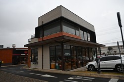 This store is fairly simple but does have a small mural that wraps around the drive-thru lane.