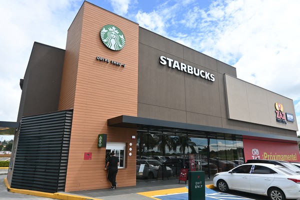 This store features a colourful mural that wraps around the entirety of the drive-thru lane.